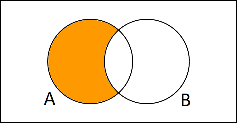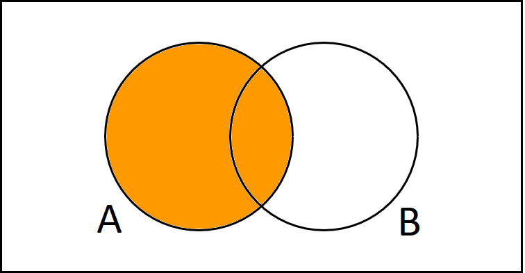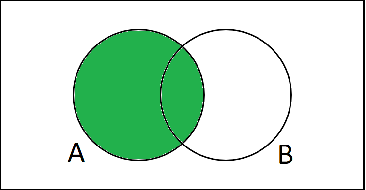 Wir können auch die Differenz, also A ohne B darstellen. Das wäre dann der Bereich von A, der sich nicht mit B überschneidet.