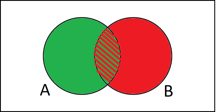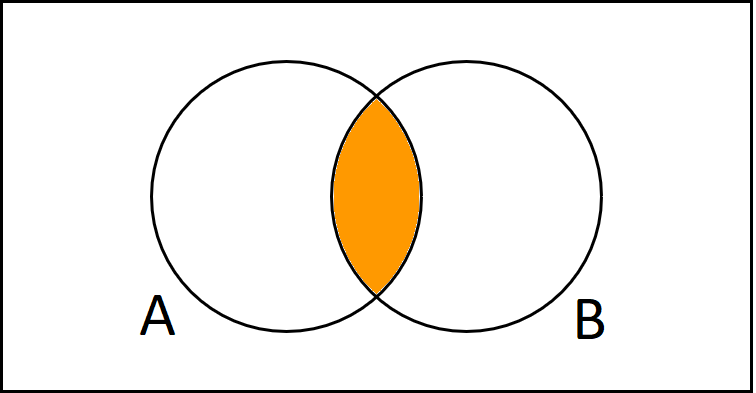 Die Schnittmenge von A und B ist der Bereich, wo sich die beiden Kreise überschneiden.