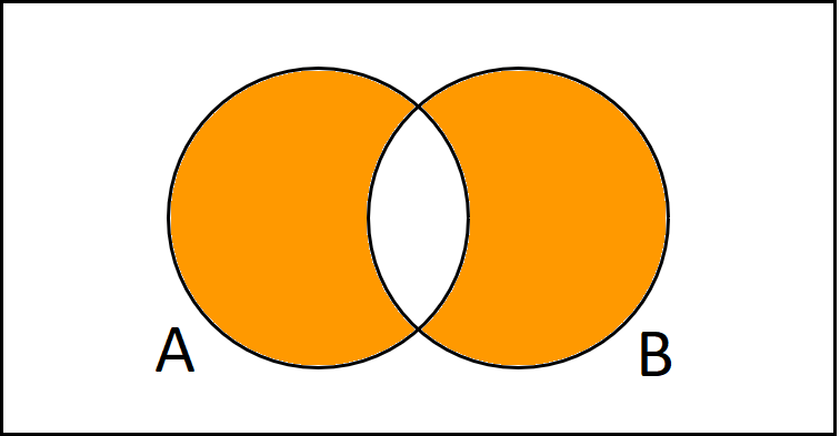 Das ist, wie oben schon erwähnt, die symmetrische Differenz. Leiten wir uns her, wie man sie berechnet: